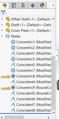 FIGURE 2: SOLIDWORKS Concentric Mate Locked Rotation