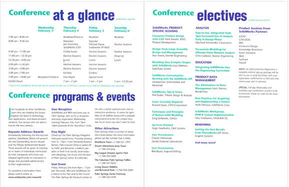 The customer breakout sessions were quite interesting. Back in 1999 Large Assembly Management was an important topic presented by customer Dan Sweet, Phil Sluder presented his first-ever breakout session at World, Graphics Systems Applications Engineer Jeff Setzer showed off PhotoWorks, and future SOLIDWORKS employees Mark Biasotti, Lutz Feldman, and Richard Doyle presented.