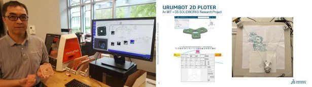 Shawn Liu – Shawn is an R&D Engineering Director for 3DEXPERIENCE SOLIDWORKS at Dassault Systèmes. He is bringing a research project initiated by MIT Professor Neil Gershenfeld that is integrated with xDesign FabConnect. The objective is to demonstrate a scalable mechanism with configurable motor nodes controlled by real-time parallel programming. The project is called URUMBOT 2D PLOTTER.