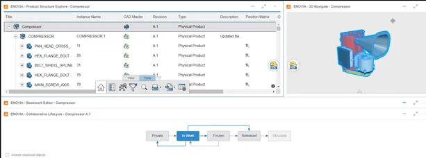 Advanced data management capabilities such as revision control, product maturity, permission management, and more are automatically enabled when you make design changes on the 3DEXPERIENCE platform. The platform provides the technology infrastructure to manage product design data and documents.