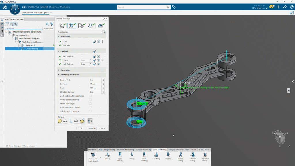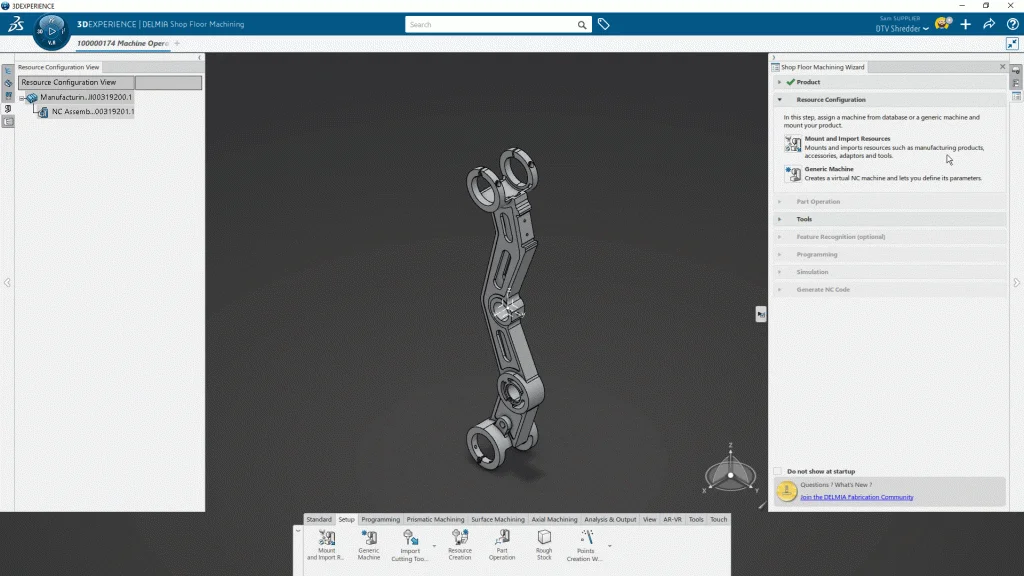 We’ll start, like in most apps on the 3DEXPERIENCE Platform, by simply searching for the part we want to fabricate. From there, we can dive right into the Shop Floor Machining Wizard to help guide us through the initial setup.