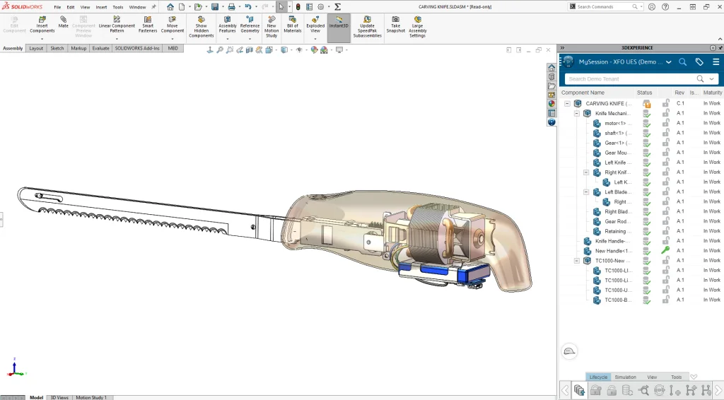 You can see that the old handle no longer fits our new battery pack, and to be honest it’s a bit dated. All I need to do is save it to the 3DEXPERIENCE platform with the SOLIDWORKS Connector that’s included in the 3D Sculptor role.