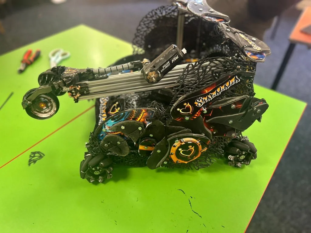 This year’s theme was ‘Into The Deep’, with 64 of the top UK teams coming together to compete. The teams were divided into two divisions: Team Pacific and Team Atlantic. They must then work together to gain points by placing blocks into baskets or connecting them to the centre submersible. Extra points are awarded for teamwork, how many blocks are placed into the baskets, and for robots placing blocks autonomously. Teams are also judged on the design and build of the robot, robot coding, robot drive, the robot’s ability to solve problems, plus a team presentation, portfolio and fundraising.