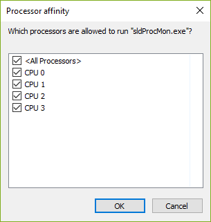 Another technique you can use to utilize multi-core processors in SOLIDWORKS is to manually assign cores to the SOLIDWORKS process, as seen in the Image below. This can be done through the task manager, located on the ‘Details’ tab as seen in Image 2. Next, right-click on the SLDWRKS.exe and select ‘Set affinity’. This then presents you with a window where the number of cores required can be assigned to that process. After this has been done, ALL of the rest of the processes listed here need to be set accordingly to not use the cores that have been assigned to SOLIDWORKS. This then allows those cores to be solely used by SOLIDWORKS. By default each process will be assigned to all the available cores.