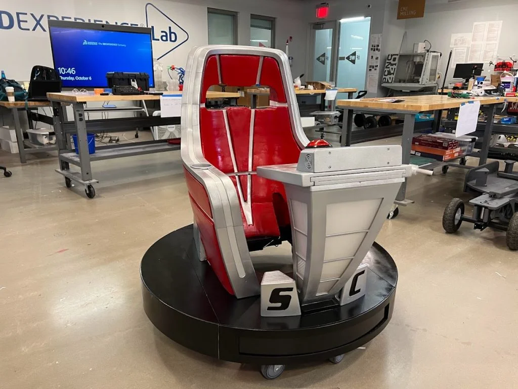 For 3D-printed pieces, Albert had to make sure everything was 6-7 cubic inches large so they could fit on the print beds. He had to redesign the 3D-printed pieces a few times; as all engineers know, while parts may look good in CAD, in real life, there can be complications. When some of the 3D-printed pieces, like the U-shape around the chair and the racing stripes, didn’t fit correctly, the team had to decide if they would fix it manually or redo the CAD and reprint. “Most of the time, it’s easier to change the CAD and reprint the part,” said Albert. And, so they did.
