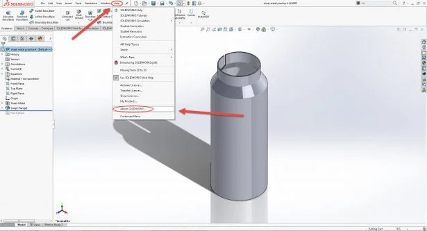 You will need your SOLIDWORKS student serial number for this step. If you are at school, you should automatically have a student license. If you bought the software yourself, it might be different. If you don’t know your serial number, it can easily be found within the product itself. Open SOLIDWORKS on your computer; click the “Help” button in the top left menu, then click “About SOLIDWORKS…”