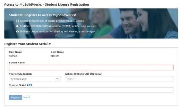 Welcome back, everyone! In my previous post I talked to you about what MySolidWorks for Students is. Today I will walk you through how to make your own account so you can start exploring today!