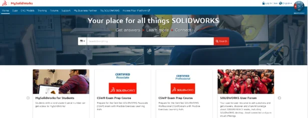MySolidWorks also contains the links to the SOLIDWORKS Community and the SOLIDWORKS User Group Network. Educators and students can join to ask your questions and attend local/online meetings. You need to create a 3DEXPERIENCE ID (login).