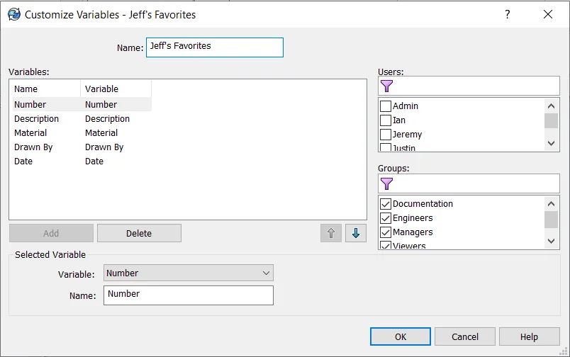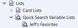 To begin with, the vault Administrator makes a list of variables under Lists > Quick Search Variable Lists. Different lists can be made and assigned to Users or Groups. You can have up to 5 variables per list; Quick Search automatically searches on File / Folder Name so that’s not needed in these “5 favorite” lists.