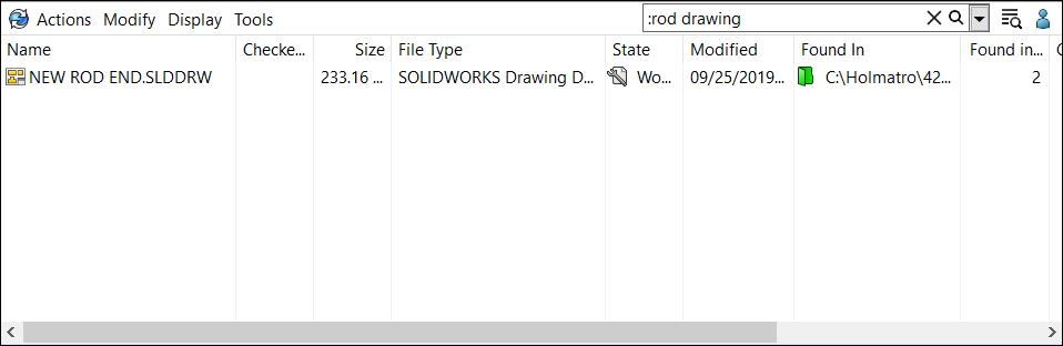 Let’s do a simple search. I want to find all of the drawing files that pertain to any rod part or assembly designs. Here’s one way to do it: