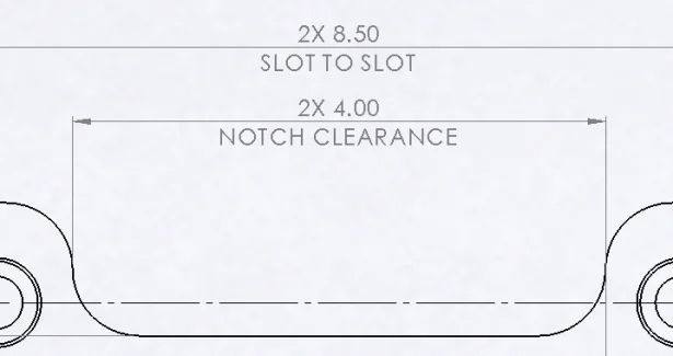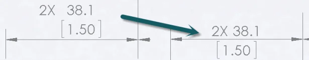When “Solid Leader, Aligned Text” is set, a second text entry field appears within the Dimension Text group box. Text entered into this field will appear under the solid dimension line. Parenthesis and Inspection outline may be applied to the top and bottom independently from each other.