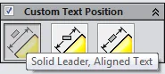 The new capability is available for linear, diameter and radius dimensions set to “Solid Leader, Aligned Text” on the dimension’s PropertyManager under the Leader tab within the Custom Text Position group box, regardless to the selected Drafting Standard for the drawing.