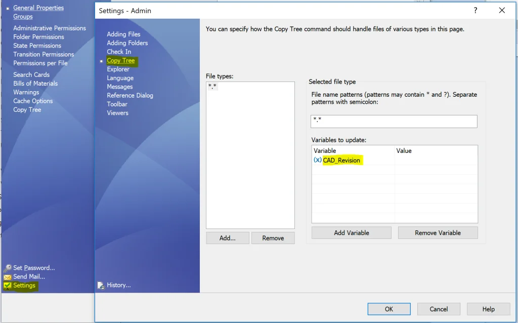 If it’s desired to have an automatic transition, in the case of PDM Professional, to clear old variable values during a check-in, Save As and/or Copy Tree can be used, the only difference being Copy Tree would not be setup to clear old variable values.