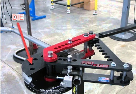 The material for the chassis/roll cage is 1 ¼” DOM or Drawn Over Mandrel mild steel tubing. DOM tubing is easily formed, has high yield and tensile strength and has good machining and welding characteristics. DOM tubing is formed using a manual tube bender as shown below. Power assisted tube benders are available but the cost is usually out of the range for a hobbyist. The tube is formed over a die which maintains the diameter of the tube in the bend area and prevents the tube from “kinking” during bending. The degree wheel is used to create accurate bends because not all bends are 90°. I have one of these tube benders in my garage which I used to fabricate a roll cage for a Porsche 924 race car. You can watch how a tube is formed here.