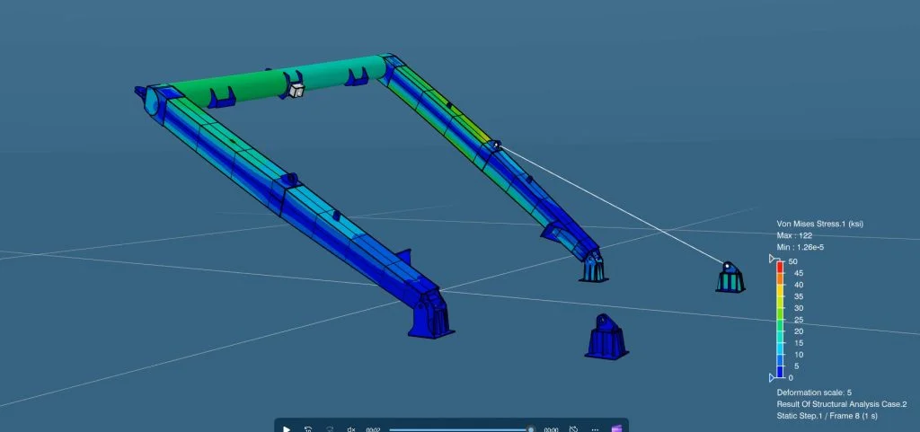 PES chose 3DEXPERIENCE Works Simulation tools because they are integrated with SOLIDWORKS and could be utilized more quickly. Plus, no additional hardware was needed because the solver runs in the cloud, freeing up local computing resources. Finally, 3DEXPERIENCE Works could handle complex, large structure, nonlinear, and fatigue simulations. What’s more, the solutions relied on the industry-proven and highly esteemed Abaqus solver.