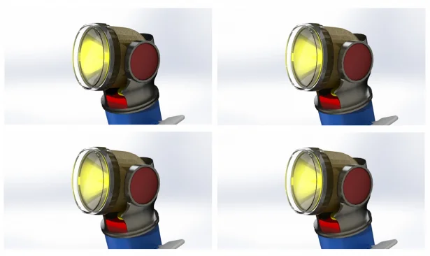 Let’s begin by looking at a simple torch component which has a light where the bulb would be, hence we should have a range of reflections and refractions through the transparent and reflective materials.