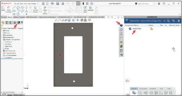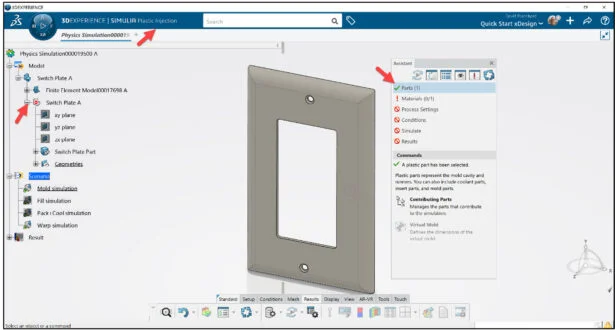 The Switch Plate part has been updated from the SOLIDWORKS Plastics tutorials to use with the 3DEXPERIENCE platform.