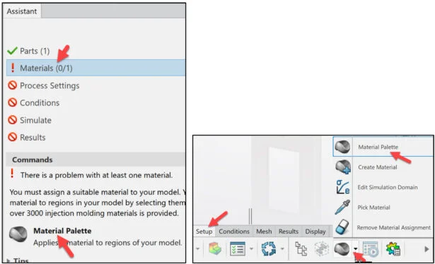 Click Material Palette from the Commands box. Note: You can also select Material Palette from the Setup tab in the Action bar.