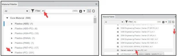 Enter PC in the Filter search box. Expand the Plastics (PC) folder.