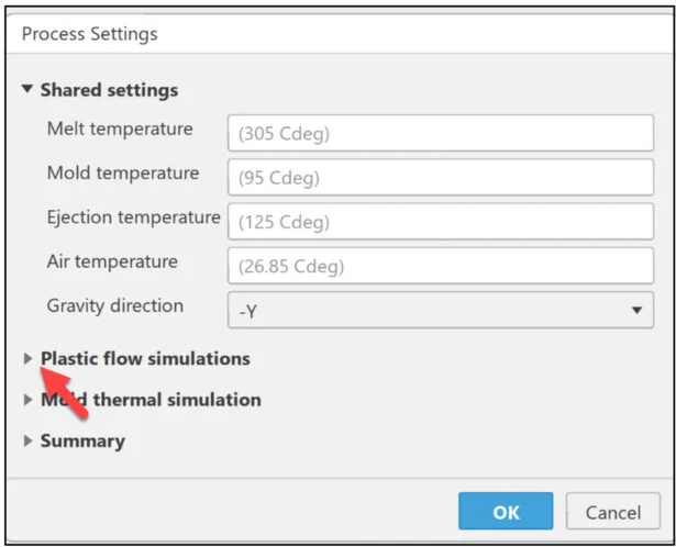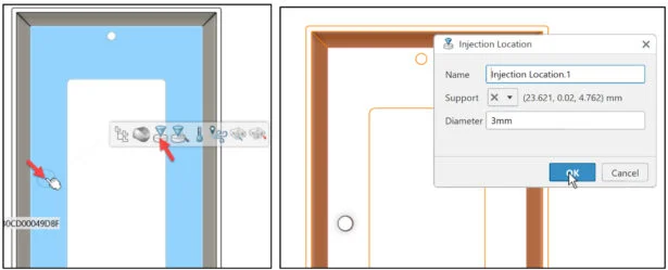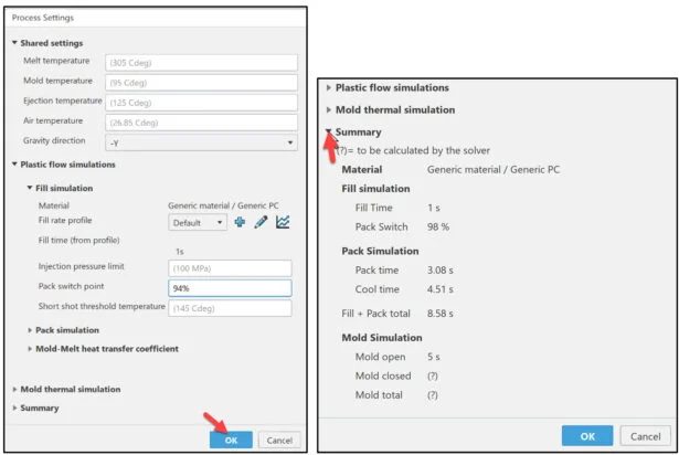Apply Polycarbonate material. The material you select must have the Injection molding behavior specified in their simulation domains.