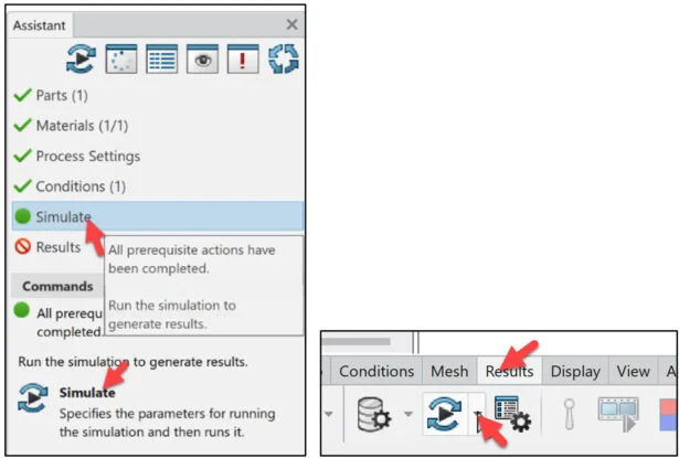 The Assistant is a useful tool if you are a beginner or experienced in simulation. The Assistant helps the user understand what conditions are required for the study. Note: The Assistant is available in most SIMULIA native Apps. It is similar to other panels in native Apps; you can move, resize, and dock.