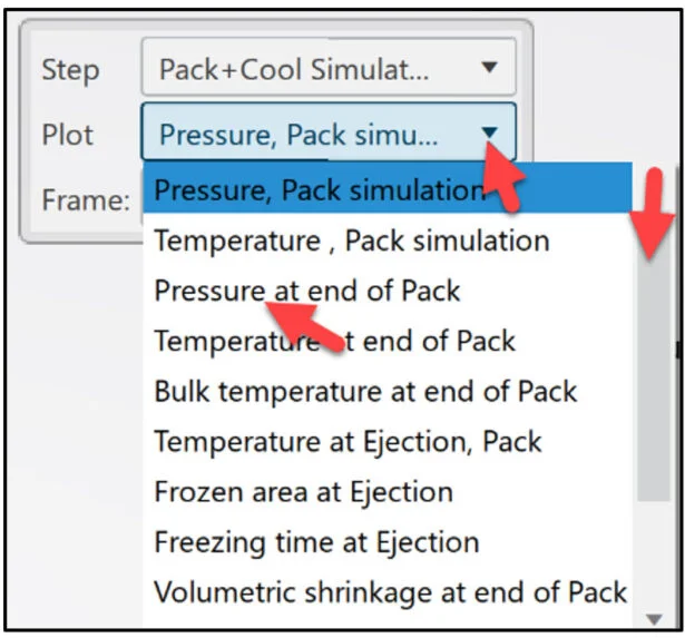 Select Pressure at end of Pack from the Plot drop-down menu.