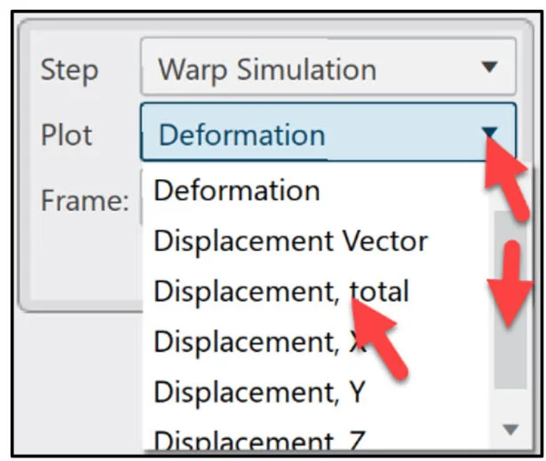 Create an animation of the current contour plot (Warp Simulation – Displacement, total).