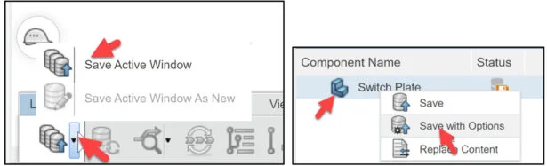 Click Save Active Window from the Lifecycle tab in the Action bar. Note: You can also right-click Switch Plate in MySession, and click Save with Options.