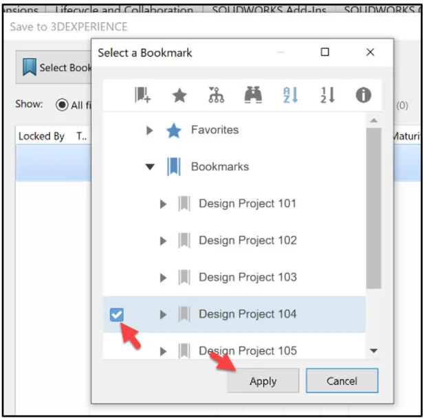 In the below example, I selected Design Project 104 as my bookmark.