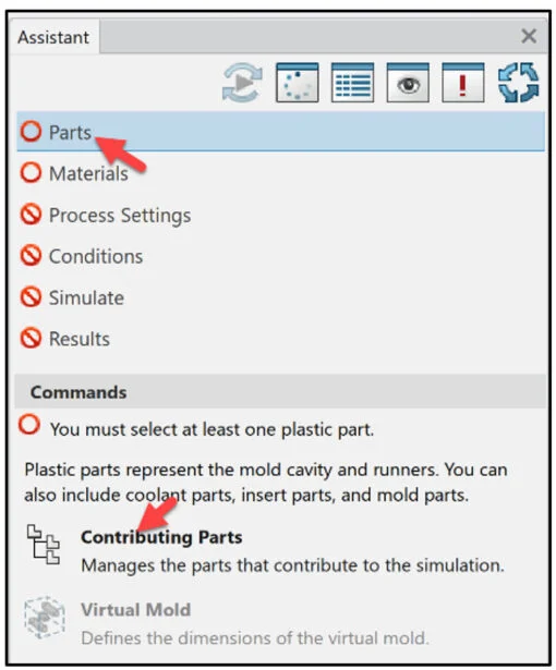 Click Parts from the Assistant dialog box.