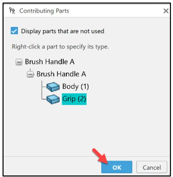 The Contributing Parts dialog box is displayed.