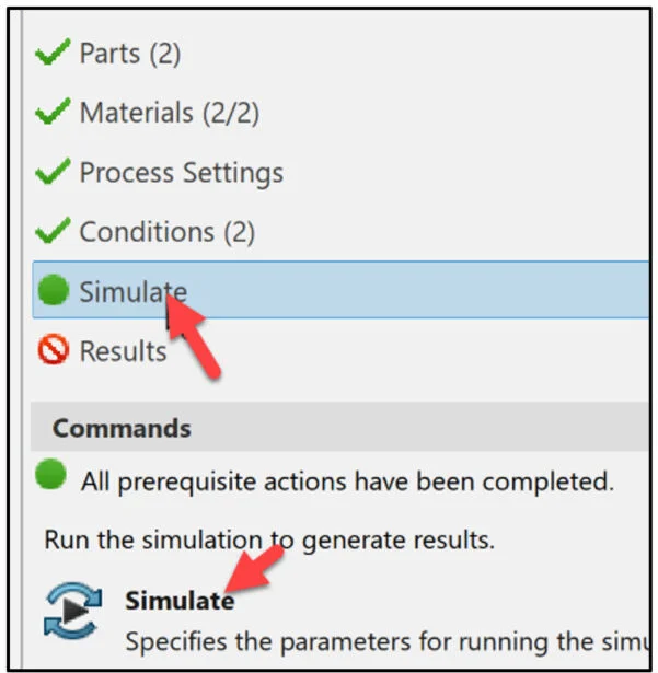 Click Simulate from the Commands box.