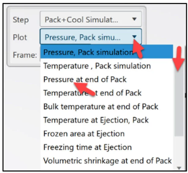 Select Pressure at end of Pack from the Plot drop-down menu.