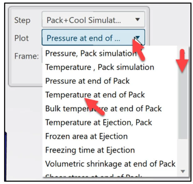 Select Temperature at end of Pack from the Plot drop-down menu.