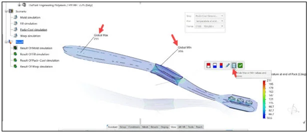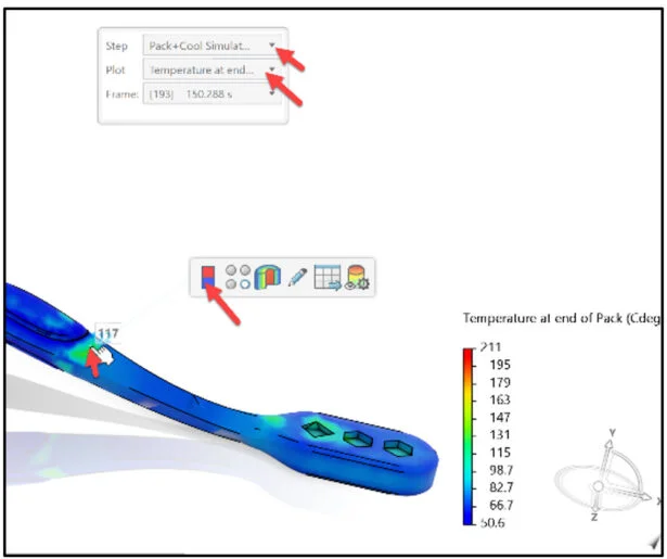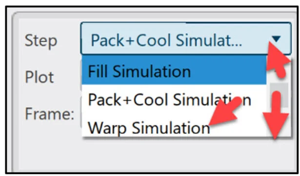 View the created simulations: Fill, Pack + Cool and Warp. Analyze various simulation contour plots.