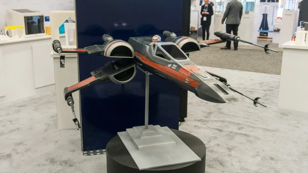 Guests at SOLIDWORKS World were surprised to discover the work that went into creating the X-Wing. Stefan 3D printed 152 individual parts on one single Sindoh 3D printer, an operation that took two months to complete. And then he spent another month and a half processing the parts. “I sanded everything down to hide all the layer lines from the printing,” he explained. “Then I glued everything together, sanded it again, primed everything and filled all the gaps and imperfections with putty and filler. I sanded it again, and then when the surface was perfectly smooth, I started painting.” This multi-week process led to the awesome final product.
