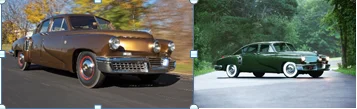 Here are before and after photos of Howards’ Tucker ’48. The brown ’48 is what Rob and Sean started with. The green ’48 represents the original color which was found when the tires were taken off the rims.