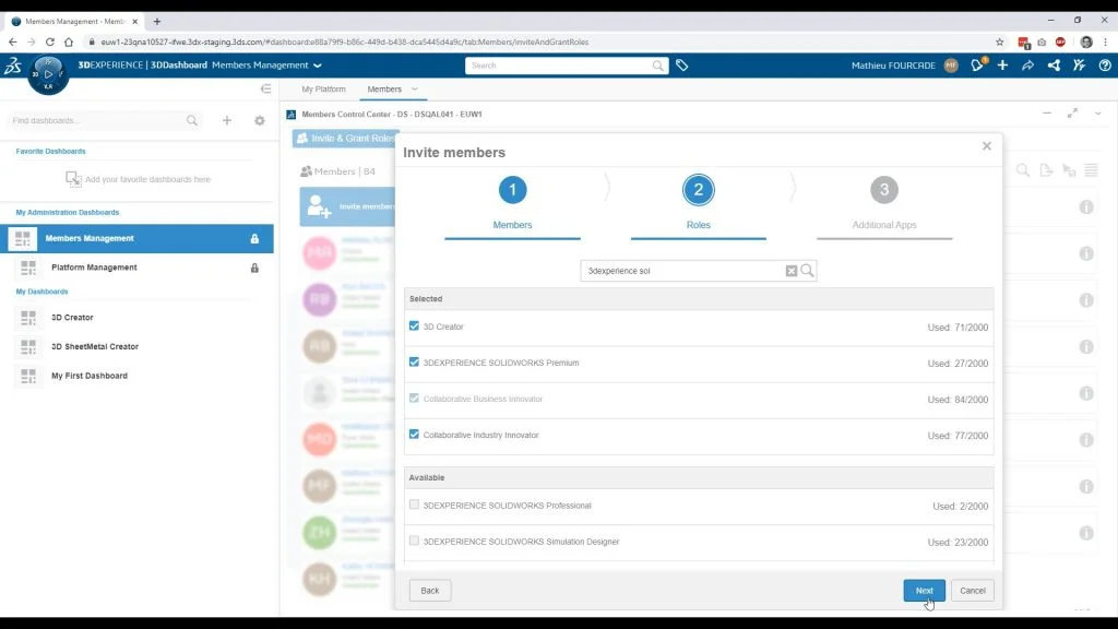 Happily, all roles (solutions) on the 3DEXPERIENCE platform are managed through an easy and innovative license management system. Admins function as platform administrators, which gives them access to several admin capabilities, including the Member Control Center.