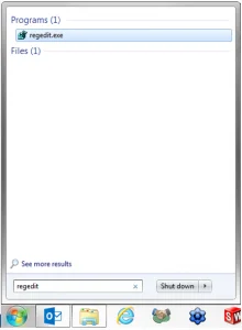 This should find the regedit.exe program and if you click it from the list, the program will open.