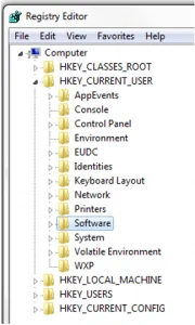 In the Registry Editor window that is opened, expand the folder for HKEY_CURRENT_USER to find the subfolder for Software.