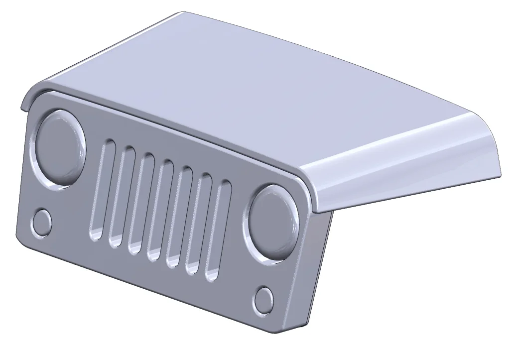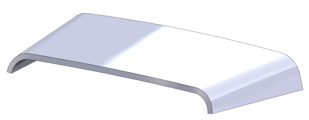 Then I rolled back to the end (after thickening) and used the Cut with Surface command, along with the two planes we originally created, to cut away the extra. This leaves us with two beautiful planar faces at the start and end of our hood. Here’s what the hood looks like after applying Mirror to the half we created: