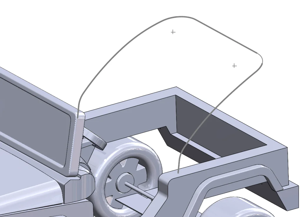 This is perfect, *except* it is obviously missing a portion. I got around this by creating a 3D Sketch, selecting the curve and using Convert Entities to bring it over, and then drawing in the portion that was missing manually, being sure to double-check my sketch against my reference pictures. I also took advantage of the fact that we can Mirror within a 3D Sketch now to complete the curve on the other side.
