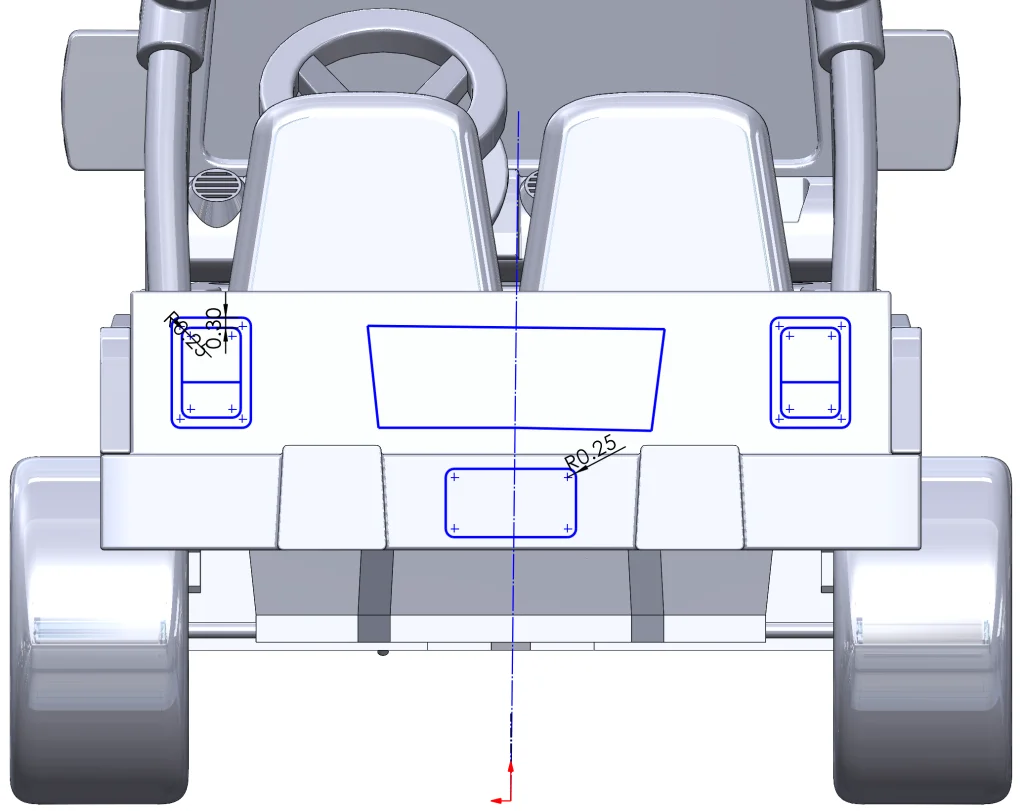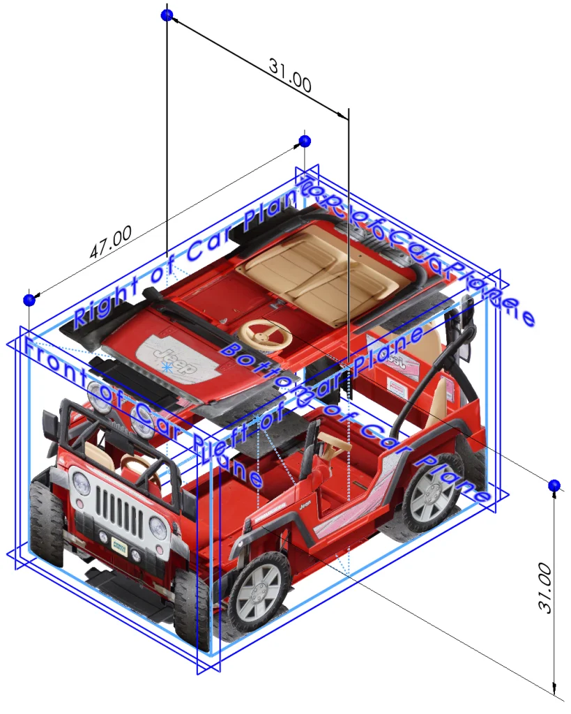 Now that we have most of the external car parts (besides seats, which were also created using the techniques previously discussed), it’s time to move on to the internals. This part was actually a bit trickier since our reference pictures don’t show everything inside the vehicle, but also critical since we are planning on adding in our electrical components and then modifying them in subsequent blogs. The trick I used here was to actually go back to the physical car and look at it… with my eyes. This required getting up, which was a good idea at this point anyway, so it was a win-win. I then approximated some of the sketches and measured some parts using digital calipers.