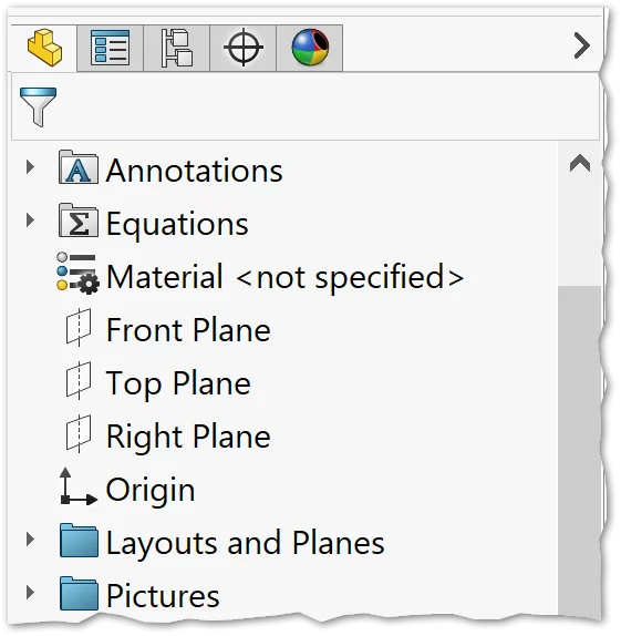 Because we have so many perfectly imperfect photos, it is important to pick one or two as your “default” – as in, if things aren’t matching up, you know where to go. I chose the LEFT side view as my default and FRONT as my backup for most things. Another tip before we dig in to the nitty-gritty is to organize features into folders in your FeatureManager Design Tree. This is a good idea for any model that is going to have a large number of features because it allows you to quickly edit specific sections as needed without looking through a thousand features first. Also, for the reference pictures specifically, it allows you to very quickly turn them on/off by suppressing the Folder itself rather than having to find and Shift + Select the group of sketches. For reference, here’s what our FeatureManager Design Tree looks like so far: