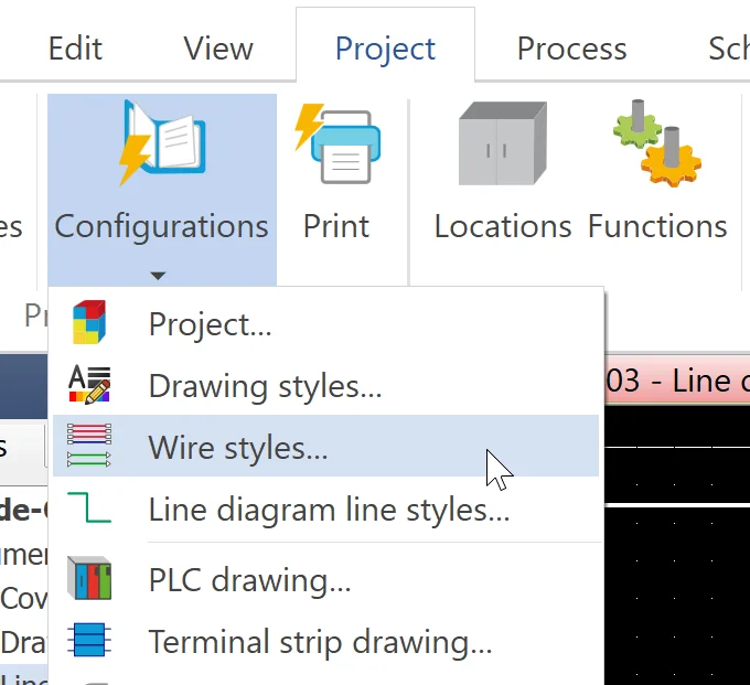 One way to access the Wire syles Manager is by going to Project > Configurations > Wire styles….