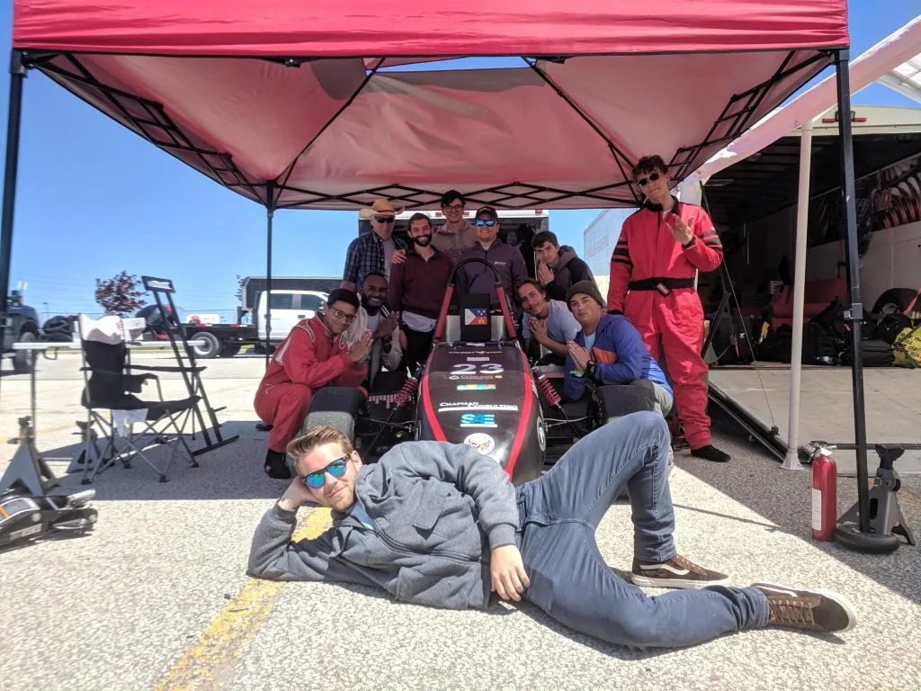 Featured here is a few of my teammates as well as myself, standing behind our race car. We had the privilege of walking the paddock, speaking to all the teams, talking about certifications and why SOLIDWORKS is beneficial for them. We passed out SOLIDWORKS zip ties and Safety glasses! It was great to hear from all of the other teams about their experience at competition. I got to meet with an EV team who completed their first competition ever as a team. They unfortunately did not get all the way through tech, but they worked hard and experienced the competition. Other teams had been competing for years and had very high budgets and gave great insight on how to get to where they were at. The best thing to do at competition is learn from as much as you can.