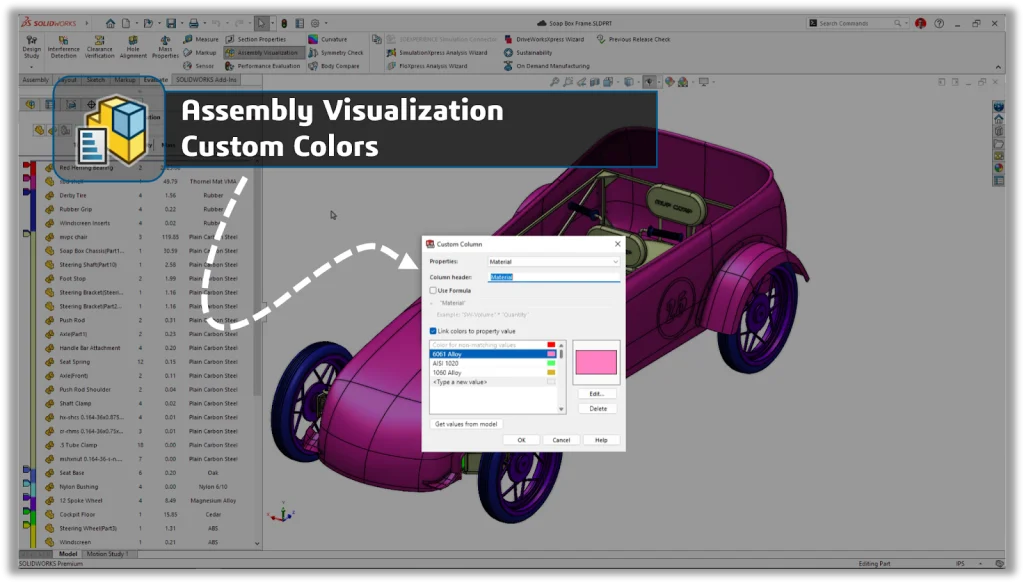 Assembly visualization will allow users to define custom colors to better help depict the results in their visualizations.