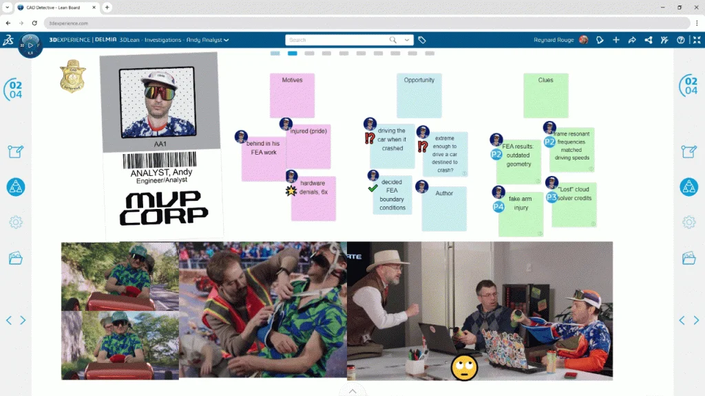 This year, the team put the audience’s mystery-solving expertise to the test by following a team of engineers at a fictitious company, MVP Corp, who had been accused of sabotage of a chassis design. In case you missed it, you can watch the entire demo here which is highly recommended!