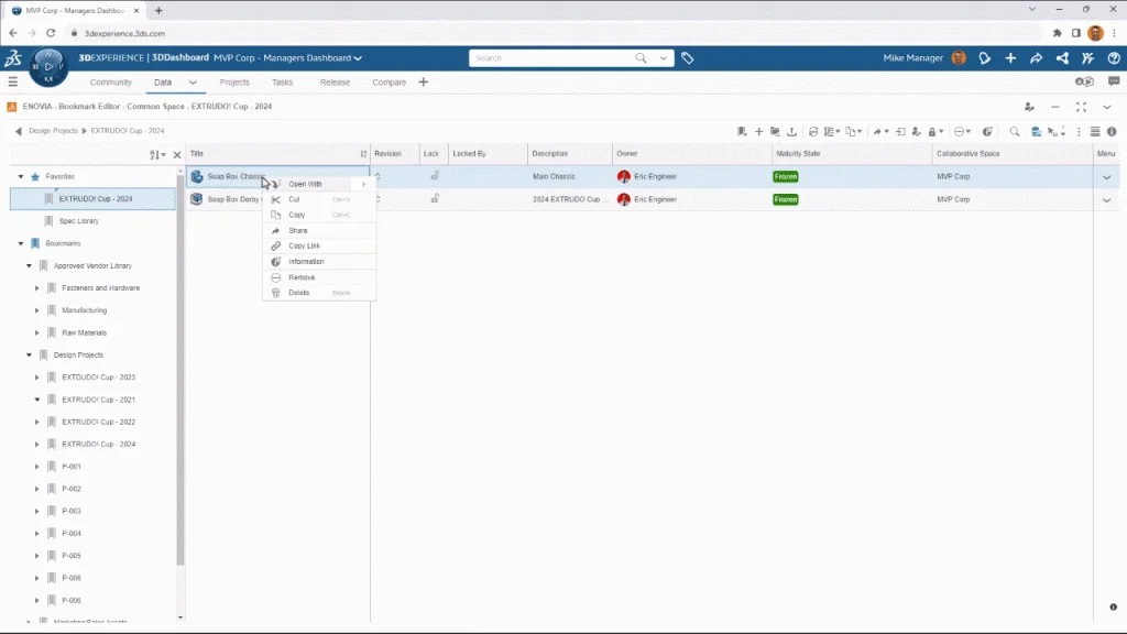 Managing the bill of materials and determining what goes to manufacturing after release falls under the responsibility of Mike Manager. However, upon discovering a few irregularities in the product structure, the weight of culpability rests squarely on Mike’s shoulders. It is now upon him to demonstrate his innocence to the team, and luckily for Mike, the 3DEXPERIENCE platform can help showcase this through complete traceability in all of the team’s actions.