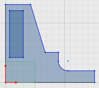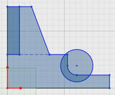 This sketch is intended to create a mount for a vertical rod, which would be revolved around the left edge to create the 3D geometry. Some of these sketch entities have relations that were added as the sketch was created, but we’ll want to use some additional relations to clean things up and make sure that we maintain design intent.
